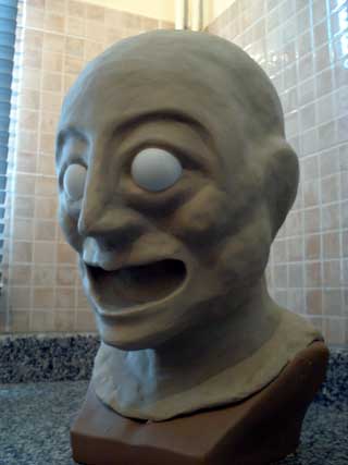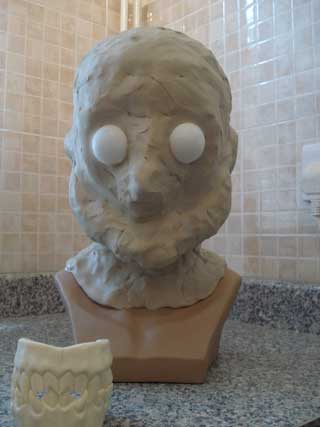 The head is now covered with clay. The eyeball forms have