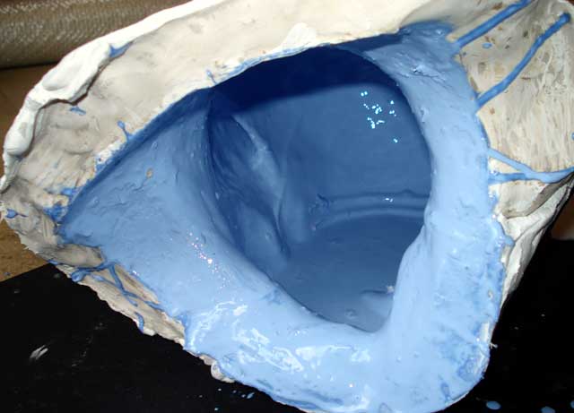 cloths to the inside of the mould and soaked them through with more latex to