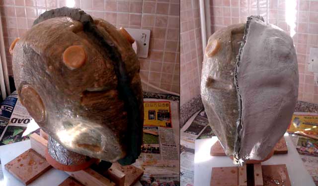latex and cloth mould is left with a split in it along the same line as the