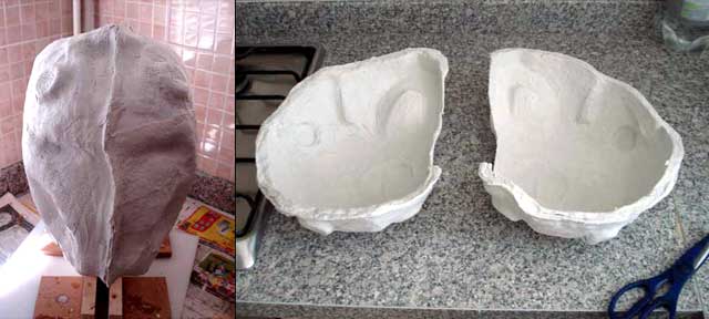 mannequin head and some cardboard so that it is not solid clay, which would