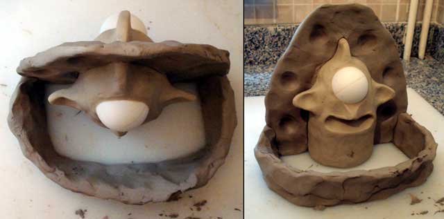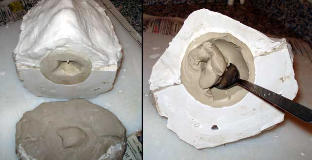 Once the plaster has set, the clay base can be removed. Dig out the middle
