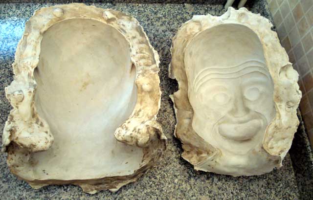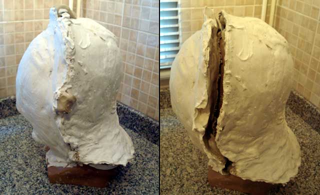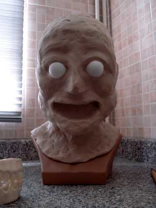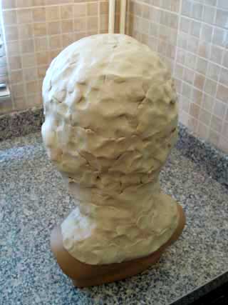 The head is now covered with clay. The eyeball forms have
