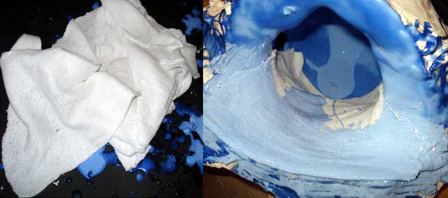 cloths to the inside of the mould and soaked them through with more latex to