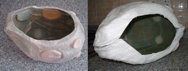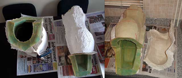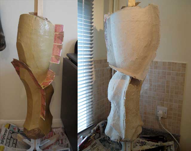 single sided example, layers of latex and cloth were built up all over