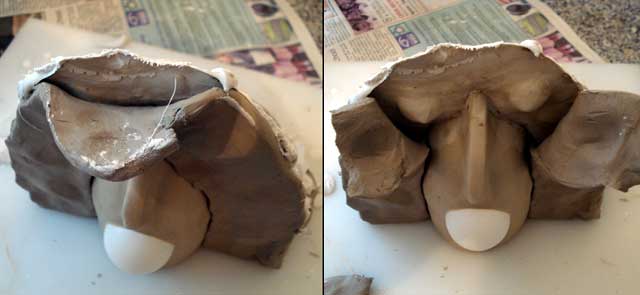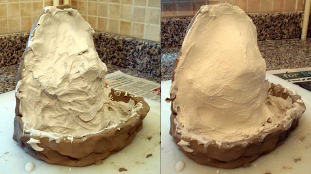 Once the plaster has set, the clay base can be removed. Dig out the middle